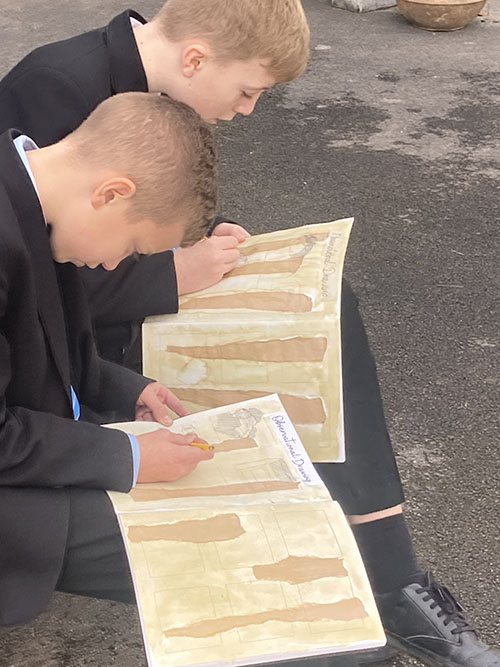 In the soft winter sunshine, the school farm became a place of quiet wonder. The Year 7 pupils, usually caught in the rush and noise of a busy school day, found themselves standing still—pencils in hand, breath rising gently in the crisp air. As they sketched the out buildings, the animals, and the long shadows stretching across the fields, something peaceful settled over them.